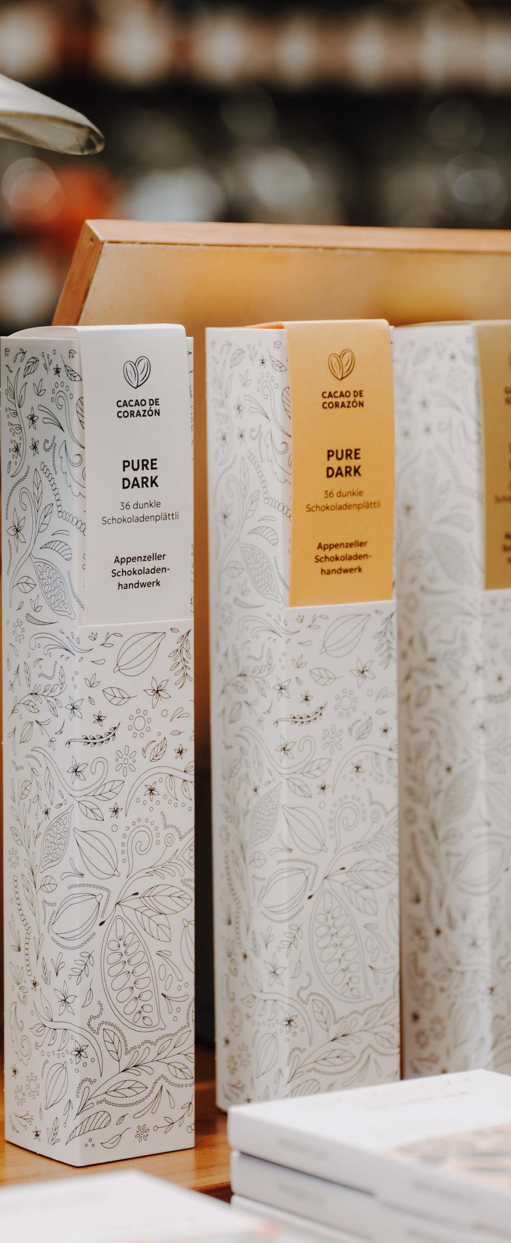 Zur Osterzeit richtet sich der Blick ein wenig auf die Schokolade. Bis 2021 war sie Teil des Sortiments im Stammladen und wurde dort verkauft – zwischen Tee, Kaffee und Gewürzen. Danach wurde direkt neben dem Laden ein ehemaliges Café in ein kleines Schokoladenlädeli umgebaut, das sich seither ganz auf Kakao konzentriert. Es ist ein warmes, stilles Stübchen mit Theke und Regalen, in dem man Tafeln und Figuren entdecken und auch Kaffee oder eine heisse Schokolade trinken kann. Unter anderem findet sich dort die Zürcher Bean-to-Bar-Manufaktur LaFlor, eine Schokolade, die Herkunft ernst nimmt und den Kakao sprechen lässt. Dass sie hier vertreten ist, passt gut, denn Heini Schwarzenbach ist Mitgründer dieser Manufaktur.